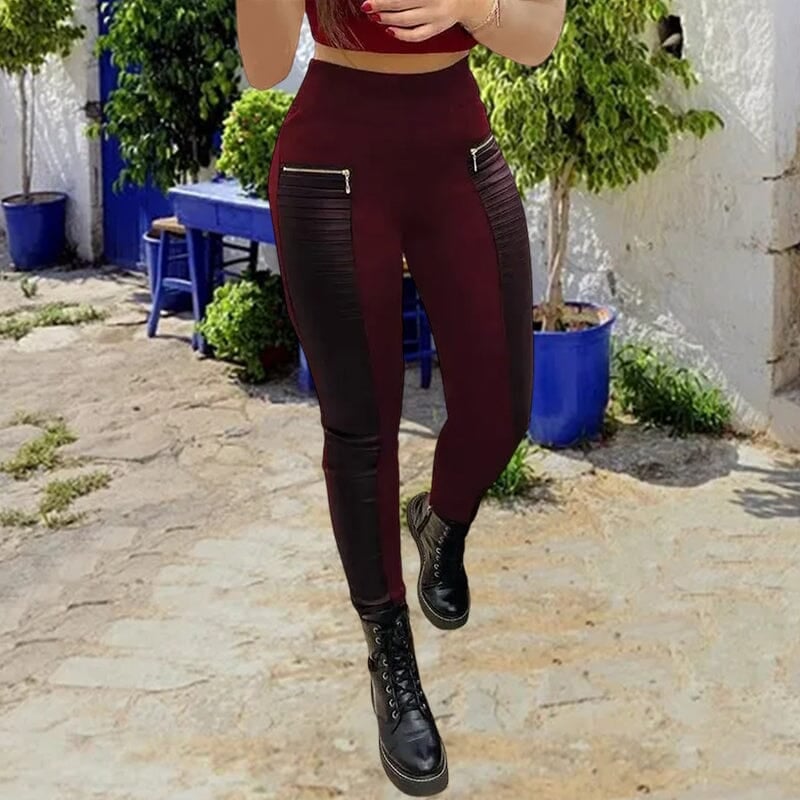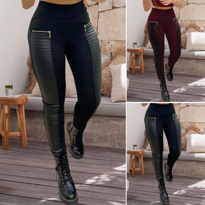 💖Kunstlederhose mit kontrastierendem Besatz und Reißverschluss👖